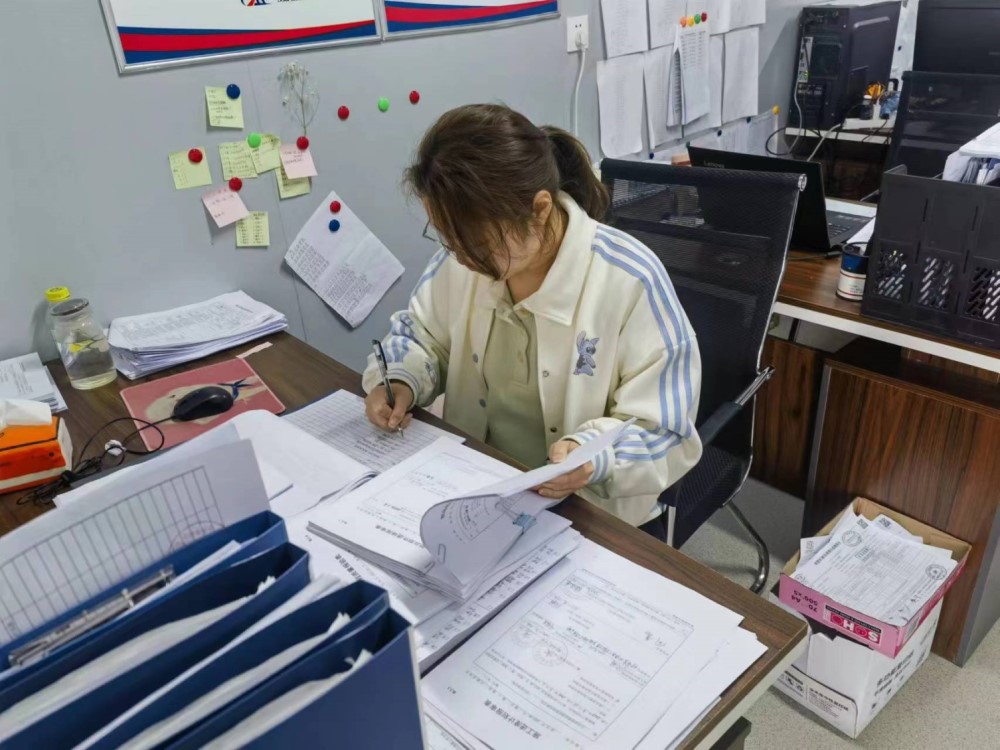 顾诗佳(25岁,助理工程师):塘坊二期A地块资料员,作为一名毕业两年的大学生,她能够像其他男生一样吃苦耐劳,工作认真负责,及时收集和整理大量工程资料,为项目顺利推进做好后勤保障。