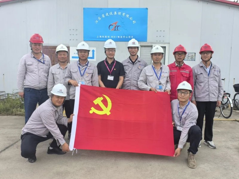 科思创MDI物流中心项目于2023年9月开工,项目建筑总面积14094m2。该项目是科思创聚合物(中国)有限公司近10年来最大的土建总包项目,也是江苏建设上海分公司在化工领域一次新的探索。该项目施工难度大,工期紧,专业要求严格,为确保项目如期交付,建设集团成立科思创MDI物流中心项目临时党支部,通过加强党建引领,发挥基层党支部战斗堡垒作用,推动项目党建与施工管理深度融合,打造了一支政治坚定、组织过硬的“施工铁军”。