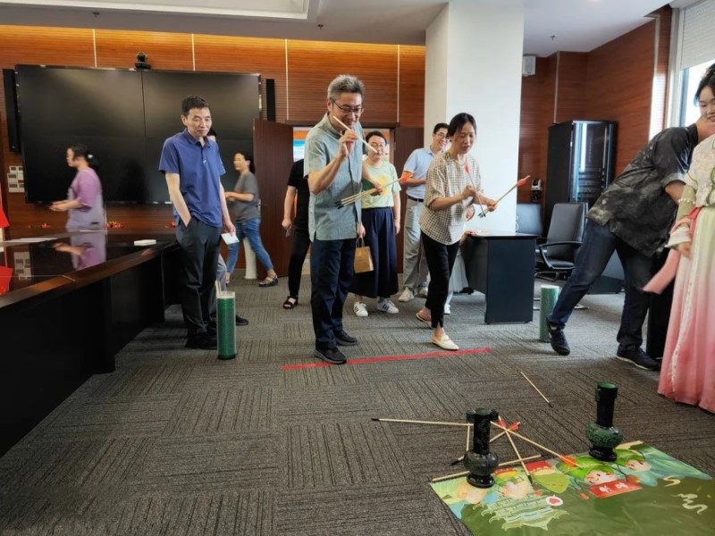 活动现场设置“钓粽子”“射五毒”“投壶”“非遗文化体验”等多个游戏及体验区,引导员工了解传统文化的典故和由来,让员工感受端午节的文化内涵和传统佳节的独特魅力,增强爱国主义情感。非遗文化传承人何丽华老师讲解了端午五彩绳的意义,并带领大家一起制作,员工们认真听讲,仔细编织,一根根编好的五彩绳带走了员工们的烦恼和忧愁,迎来了平安健康的好运。