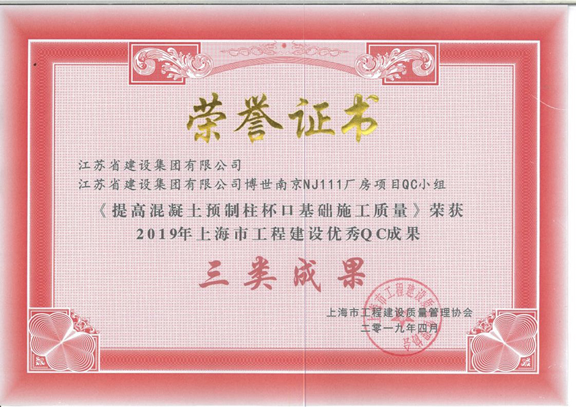 太仓博泽项目获得2019上海市QC二类成果奖
